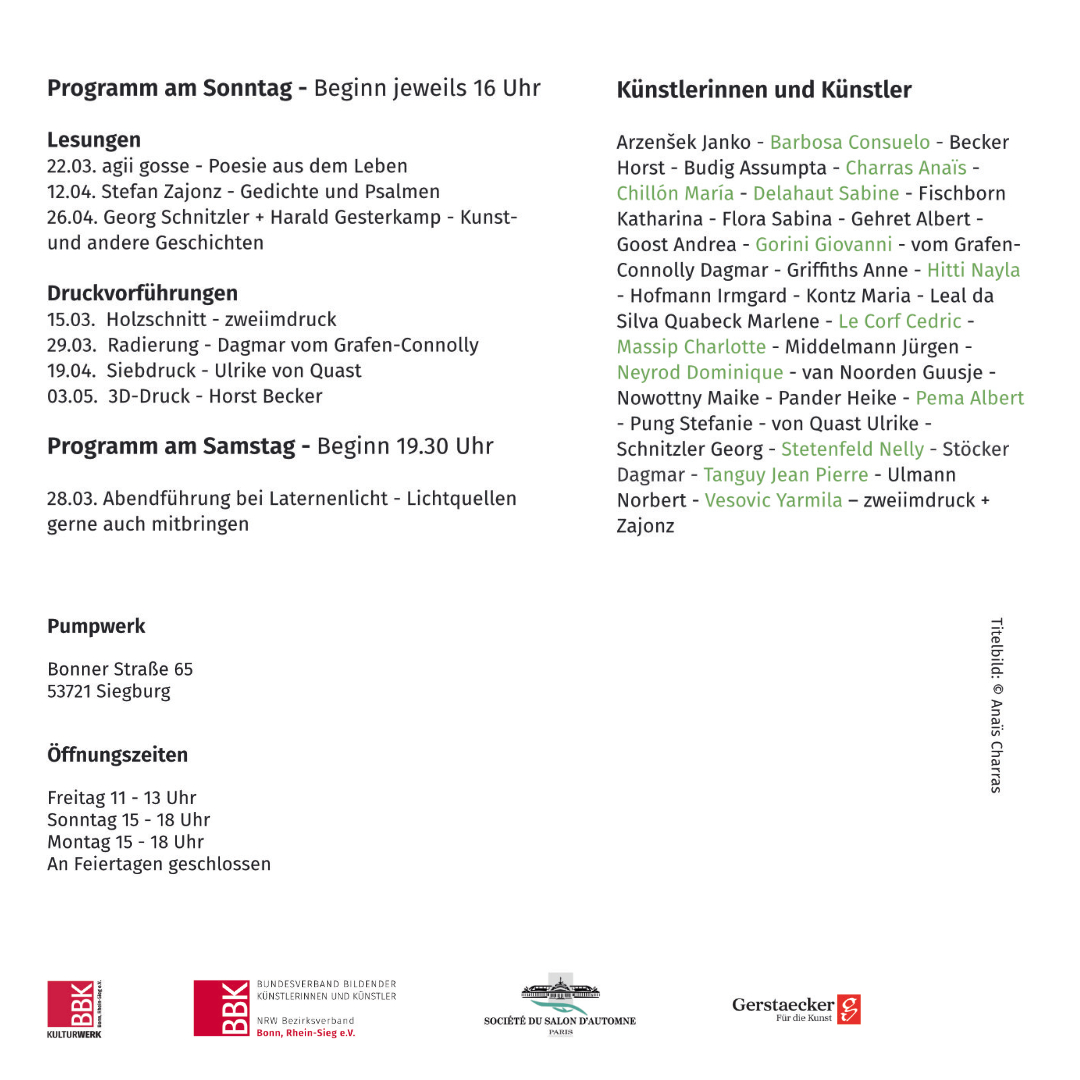 Dauer der Ausstellung: Samstag, 8. März bis Sonntag, 23. März 2025