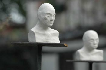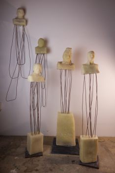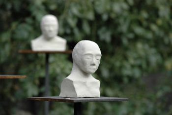 Keramik Stahlsockel | ca 15 x 12 x 9 Auch als Installation: 9 Köpfe im (Halb-)Kreis auf ca 180cm Sockeln