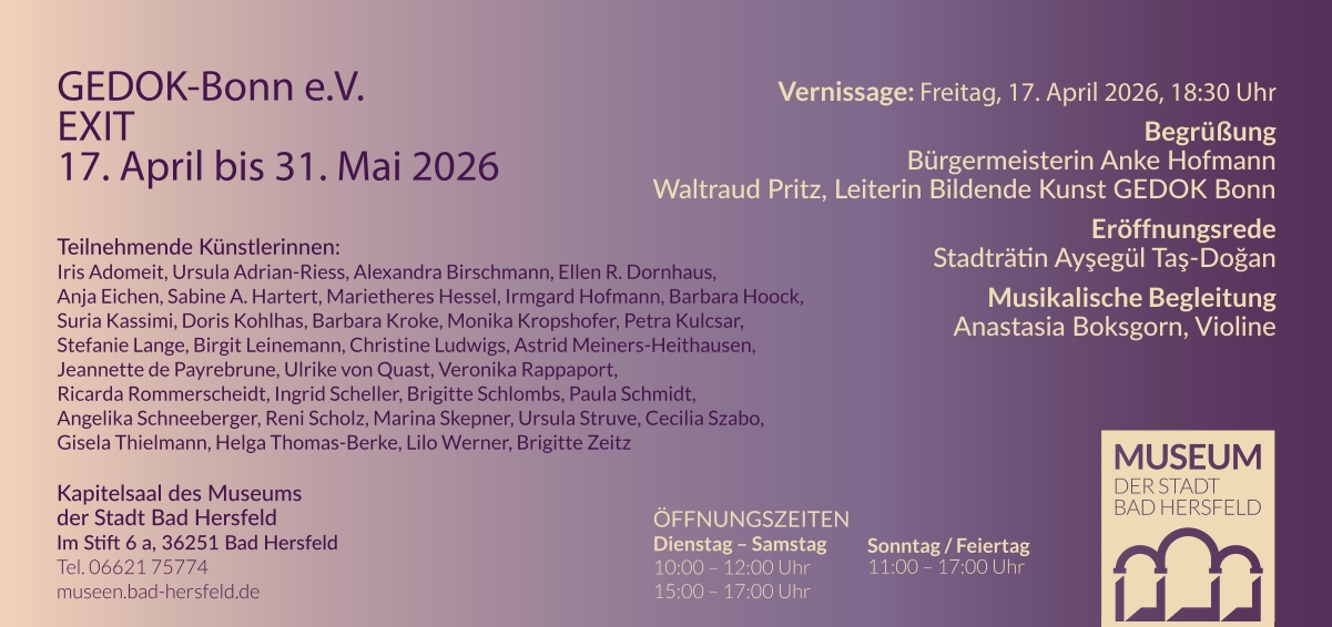 Dauer der Ausstellung: Samstag, 8. März bis Sonntag, 23. März 2025
